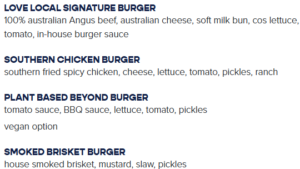 Choose any Large Plate or Burger and enjoy it with a Sydney Brewery Pint or Jade Estate Wine – just ask our team for pairing suggestions.